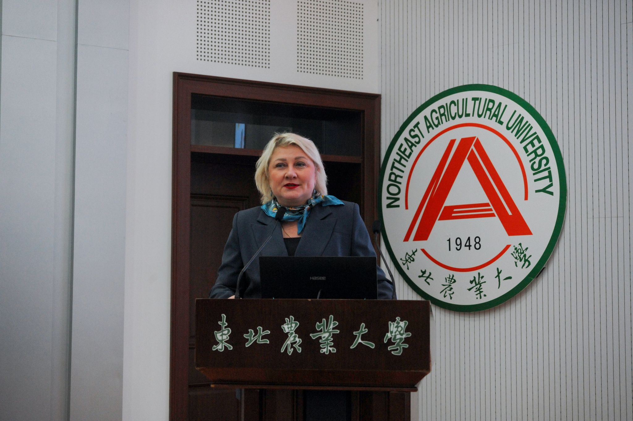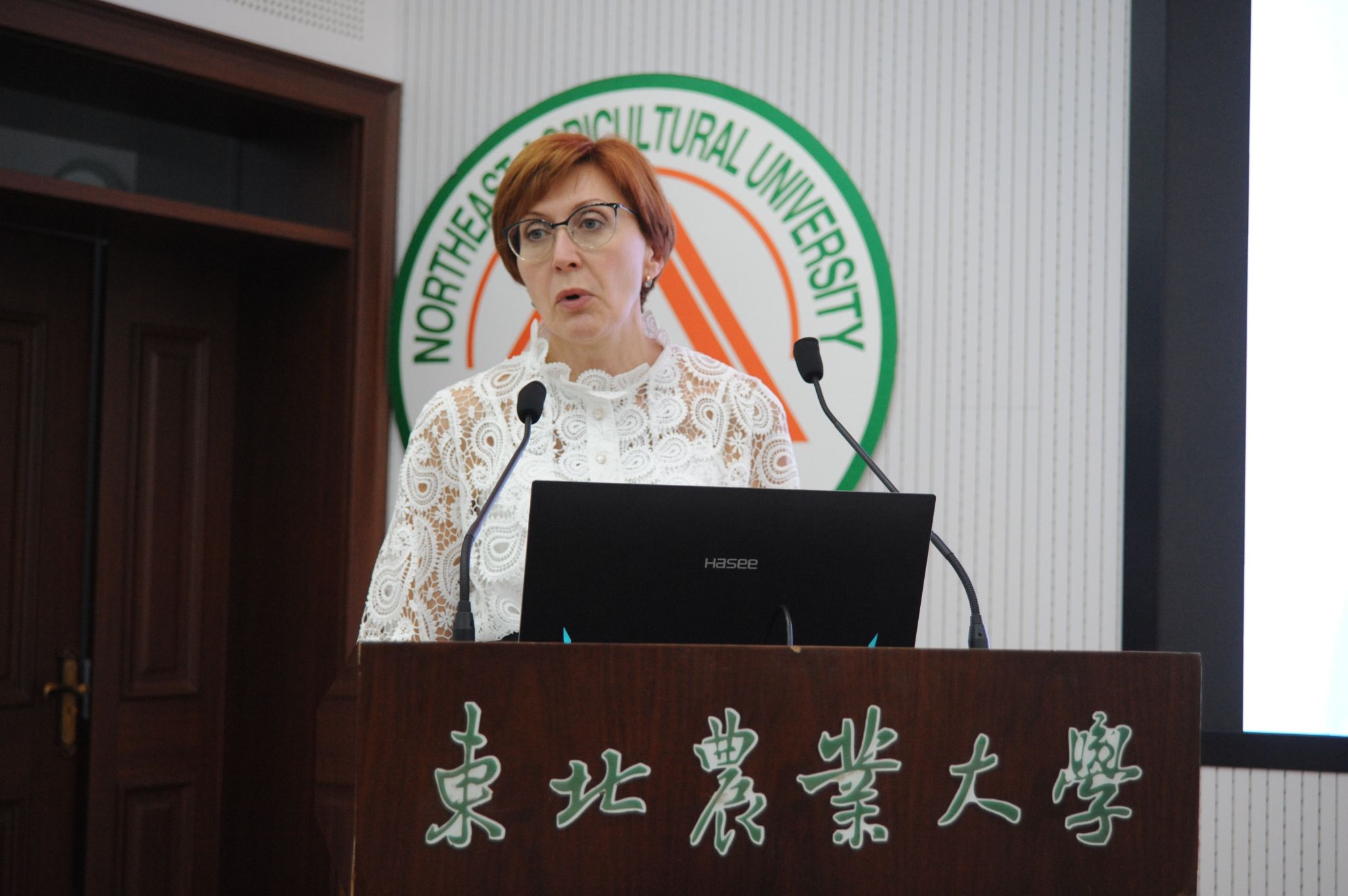 乌拉尔联邦农业科研中心主任、俄罗斯科学院通讯院士捷金教授作了题为《农工综合体的农作物新品种、新材料和新技术》的报告。捷金院士介绍了俄罗斯在农学、园艺领域的最新合作成果,并表达了希望与我校开展科研合作的愿望。园林园艺学院院长王傲雪教授作了题为《利用生物制剂防治作物病害》的报告,介绍了在生物制剂方面取得的最新研究进展,以及利用生物制剂防治作物病害的原理,探讨了该领域校企合作的展望。俄罗斯克拉斯诺亚尔斯克国立农业大学副校长阿杰洛娃·马琳娜·格阿尔基洛夫娜、东北林业大学副教授郭庆启、俄罗斯乌拉尔国立农业大学副教授涅维洛娃·奥利加·彼得罗夫娜、黑龙江八一农垦大学农学院教授孙晓丽、蒙古国农业大学副教授图木尔托格托赫、我校食品学院教授李杨、蒙古理工学院教授娜仁、我校食品学院教授李春依次作专题报告。