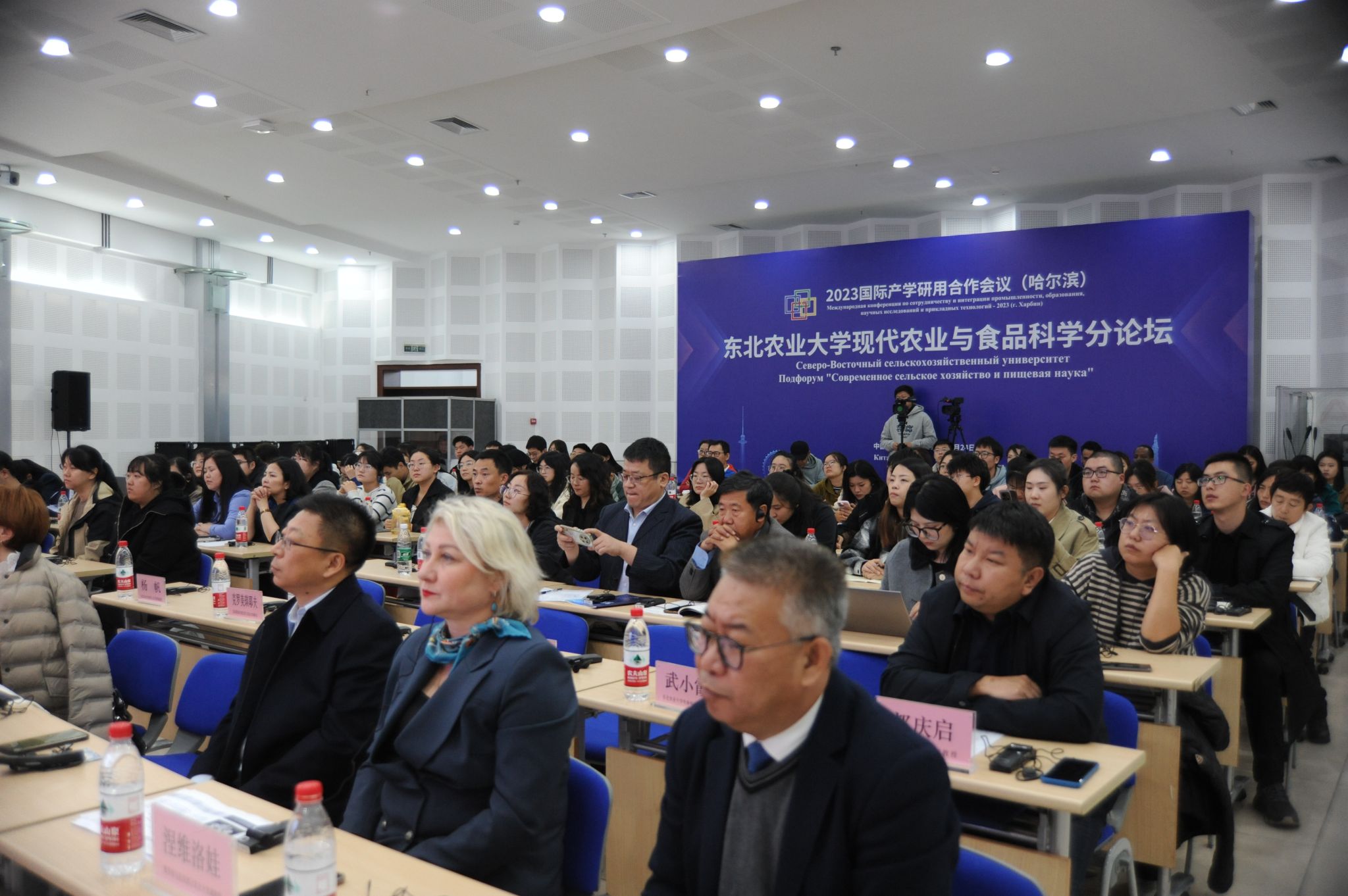 当日下午,由我校举办的2023国际产学研用合作会议(哈尔滨)现代农业与食品科学分论坛在我校图书馆报告厅227隆重召开,共有来自俄罗斯乌拉尔联邦农业科研中心、乌拉尔国立农业大学、克拉斯诺亚尔斯克国立农业大学、伊尔库茨克国立农业大学、蒙古国立农业大学等中蒙俄知名学府、科研单位和企业的专家学者及代表120余人参加了此次盛会。我校副校长刘竹青、国际交流合作处处长卢铁光、副处长孙晔等出席会议。会议由我校研究生院院长刘世英主持。