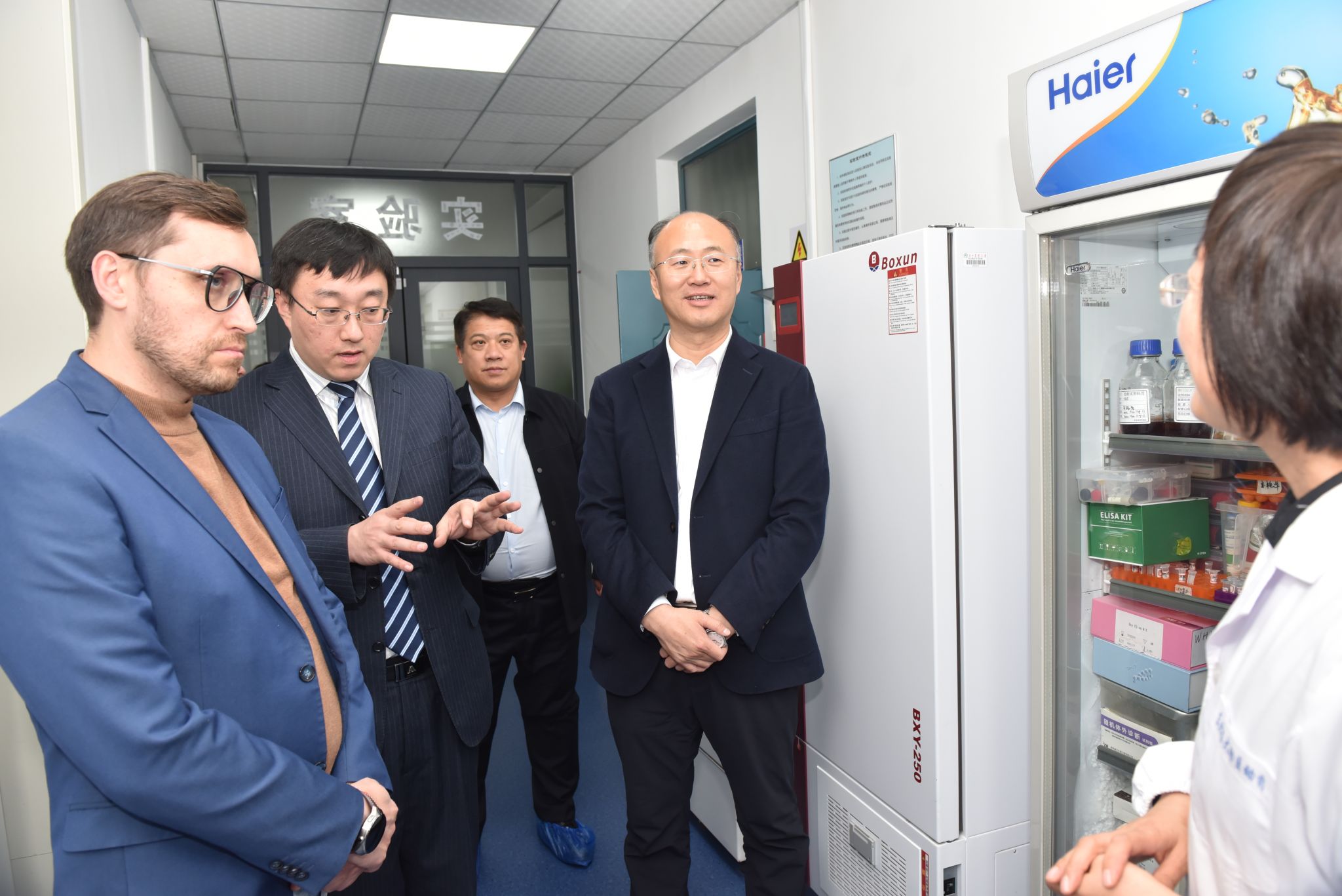植物保护学院党委书记赵东旭、院长樊东向代表团介绍了学院植物疾病防治与农业昆虫等相关专业实验室情况。动物科学技术学院水产养殖系主任管雪婷副教授介绍了学院水产养殖系本科教学生产实训基地,以及我校淡水鱼养殖方面的研究方向和最新研究成果。动物医学学院党委副书记赵文和向代表团介绍了学院的基本情况,并陪同马尔芬一行参观了动物药学实验室和动物临床教学医院。