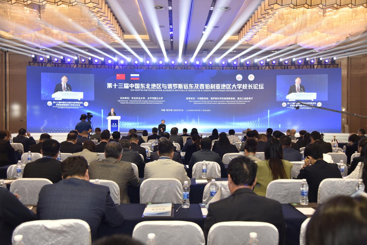 9月26日上午,第十三届中国东北地区与俄罗斯远东及西伯利亚地区大学校长论坛在哈尔滨举行。论坛由中国东北地区和俄罗斯远东及西伯利亚地区大学联盟主办,东北农业大学和俄罗斯太平洋国立大学共同承办,中国教育部、俄罗斯科学和教育部、黑龙江省教育厅共同指导,以“服务中俄两国稳固发展的中俄高校合作伙伴关系”为主题,来自中方的66所高校和来自俄罗斯的26所高校参加,联盟内外中俄高校210位来宾出席。论坛开幕式由东北农业大学副校长刘竹青主持。