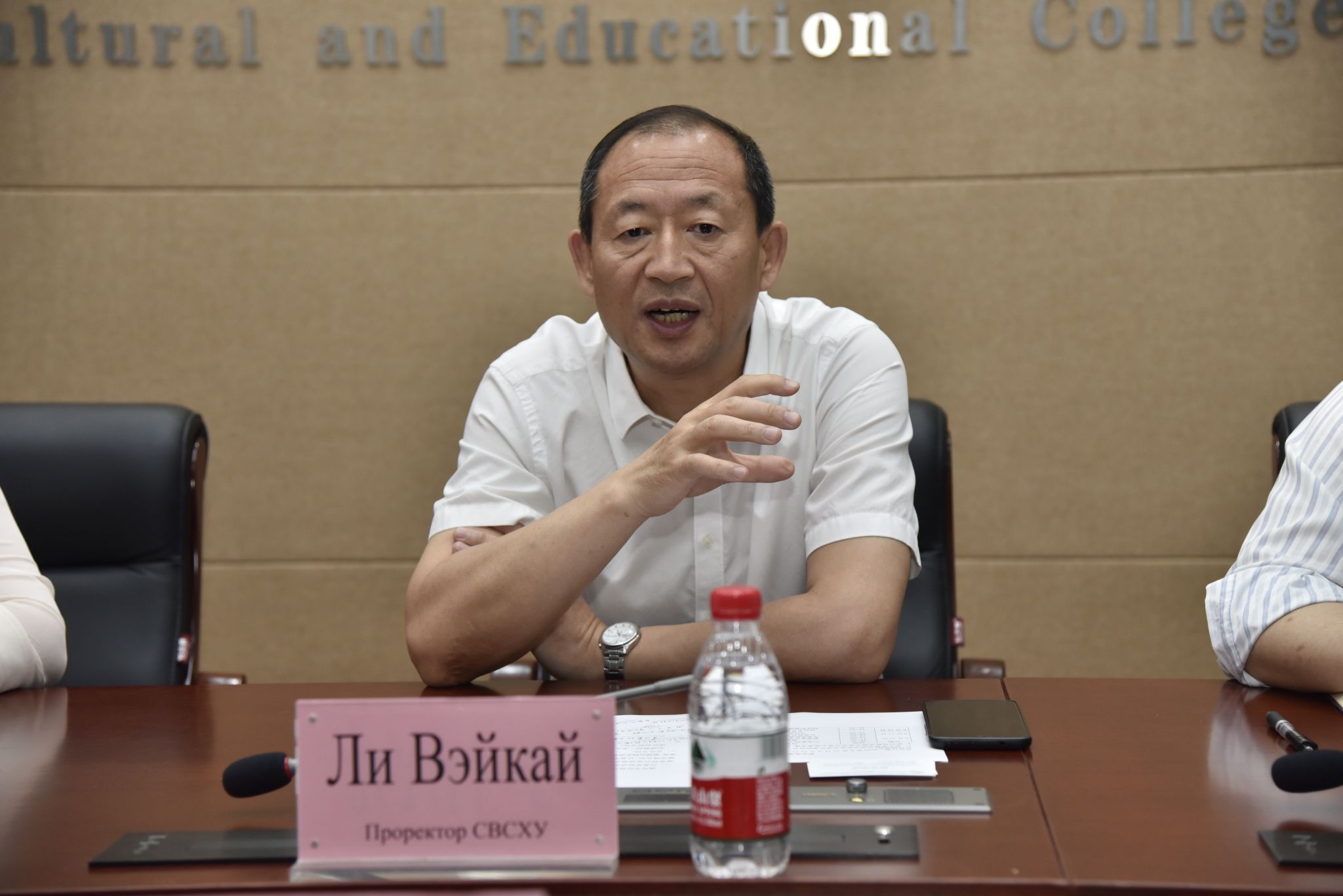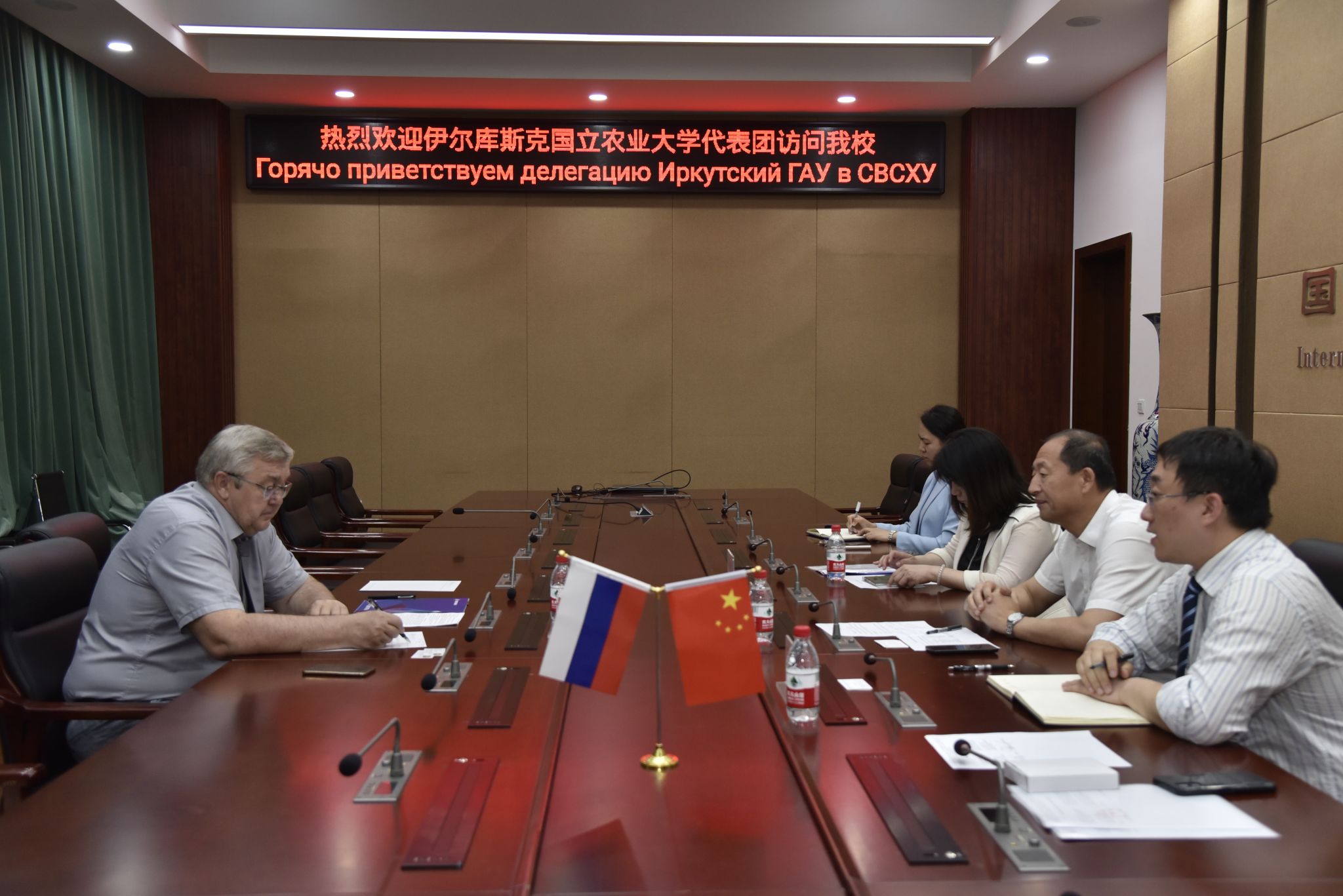 列别斯基介绍了伊尔库斯克国立农业大学在全俄54所农业院校中位列15,目前有土地资源管理学院、管理学院、能源工程学院、兽医农产品学院等4个学院,其中兽医农产品加工相关学科是其优势学科,尤其是奶牛育种专业在全俄排名第一。列别斯基校长希望双方能在开展双语夏令营、2+2联合培养、联合发表高水平论文等方面开展合作。双方在会场充分交流了合作意愿,并相约参加伊尔库斯克国立农业大学在2024年即将迎来的90周年校庆活动。