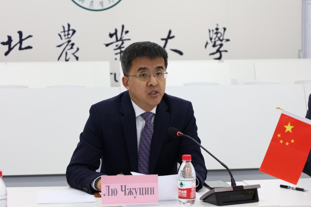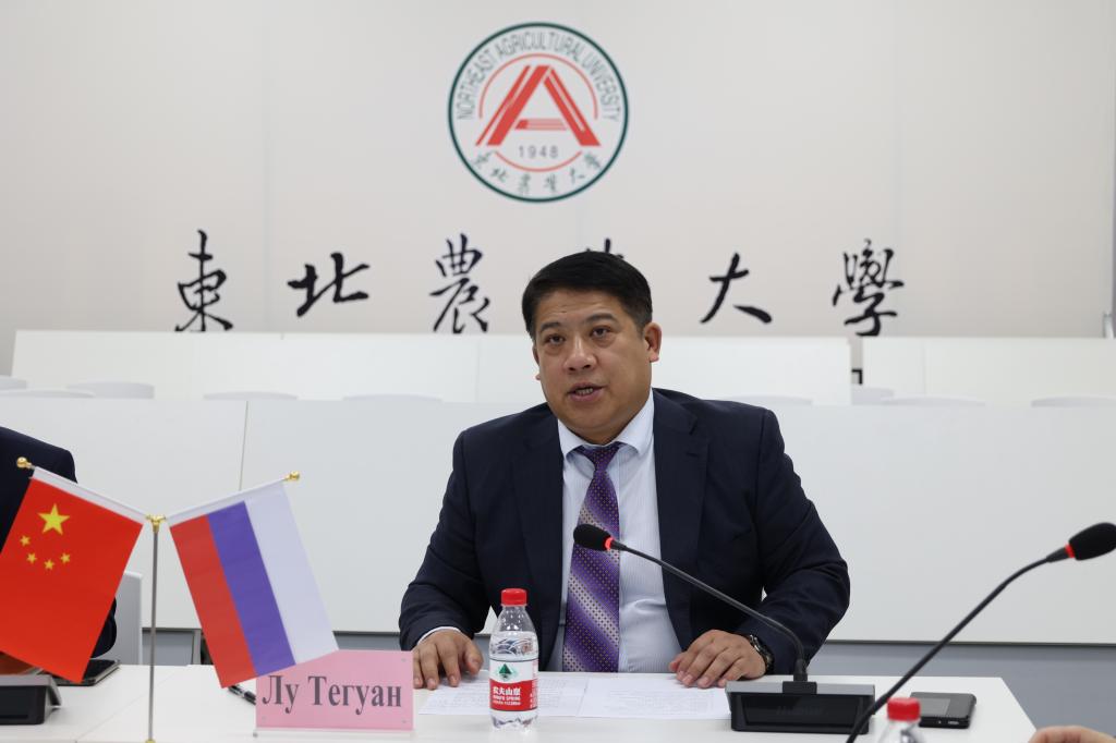 为认真落实习近平总书记对俄罗斯进行国事访问取得的重要成果和中俄两国元首达成的重要共识,深入谋划推进黑龙江省对俄交流合作,4月12日下午,东北农业大学与俄罗斯克拉斯诺亚尔斯克国立大学举行国际合作工作会议。学校国际交流合作处处长卢铁光、园艺学院副院长秦栋、国际文化教育学院副院长胡长伟、黑龙江省绿色食品科学研究院大豆加工技术研究中心主任李杨、乳品加工技术研究中心主任李春等在主楼834会议室参会。学校副校长刘竹青出席会议并致辞。克拉斯诺亚尔斯克国立大学科研副校长卡拉梅亿采夫、法律问题和安全副校长米拉诺娃、教学副校长克雷姆卡娃、外事处处长阿莲措娃等9人线上参会。会议由卢铁光和阿莲措娃共同主持。
