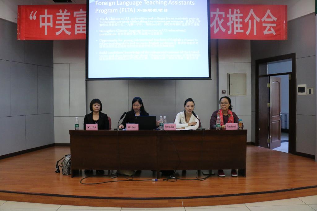 为加快我校国际化发展步伐,鼓励更多我校教工和学生出国留学进修,国际交流处于9月14日上午在新图书馆二楼报告厅(229)举行了“中美富布赖特项目”东农推介会。美国驻沈阳领事馆新闻文化处领事东方文慧女士、文化事务专家于珕和项目官员向我校师生详细介绍了“中美富布赖特项目”内容,并回答了我校师生提出的有关问题。