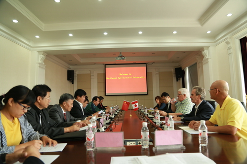 随后,在主楼610会议室,副校长张长利代表学校接见了来访客人。张长利对来访客人表示欢迎,简要介绍了我校基本情况,办学特色和科研水平,之后着重介绍了我校与加拿大开展合作的情况及优势科研成果。