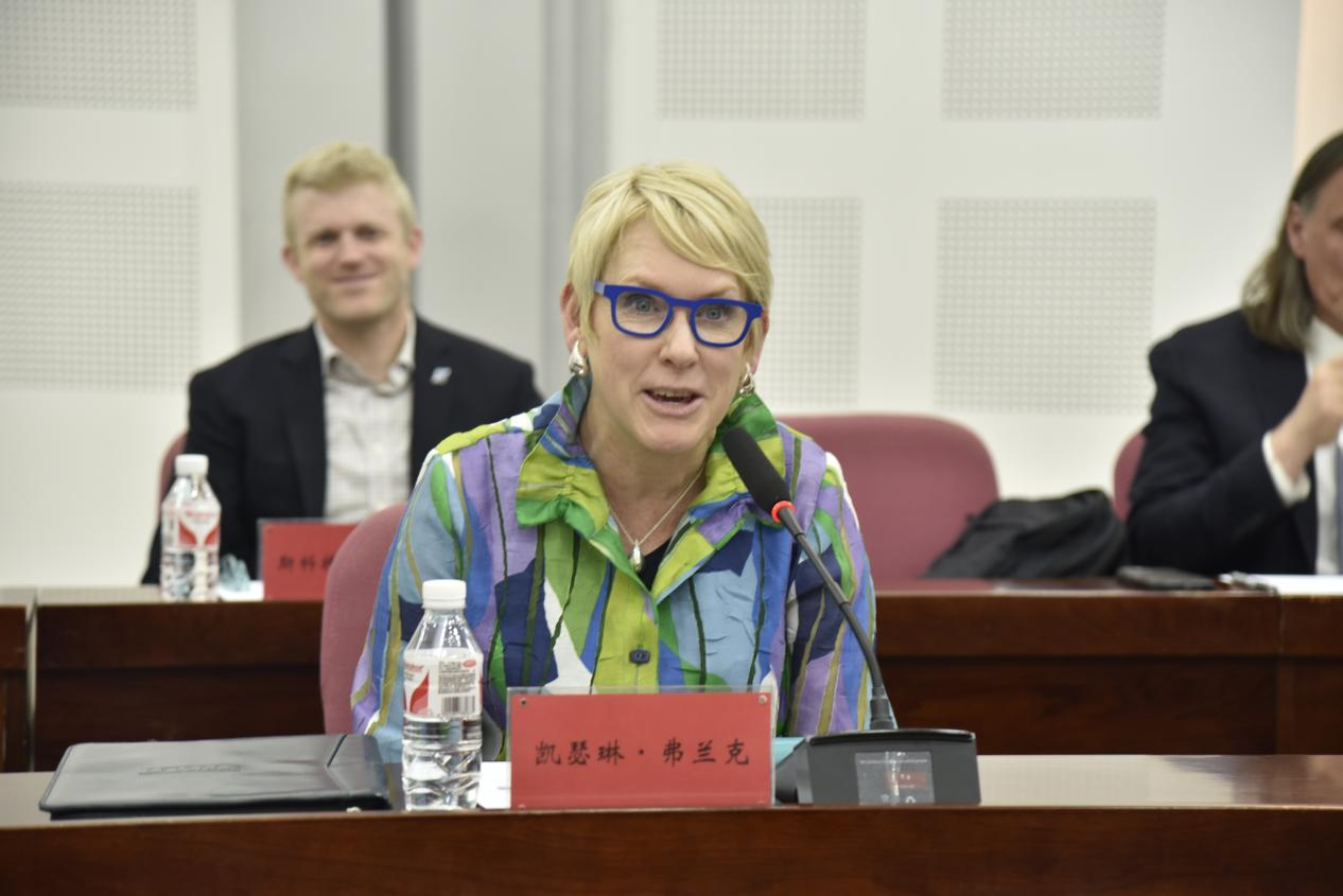 会上,刘竹青、刘忠华与四所美国大学的校长分别发言。双方在《中美人才培养计划》框架下,就优化中美121项目培养模式、联合制定课程方案、共同开发双语慕课、合作编写国际化教材等多项议题进行了务实探讨。