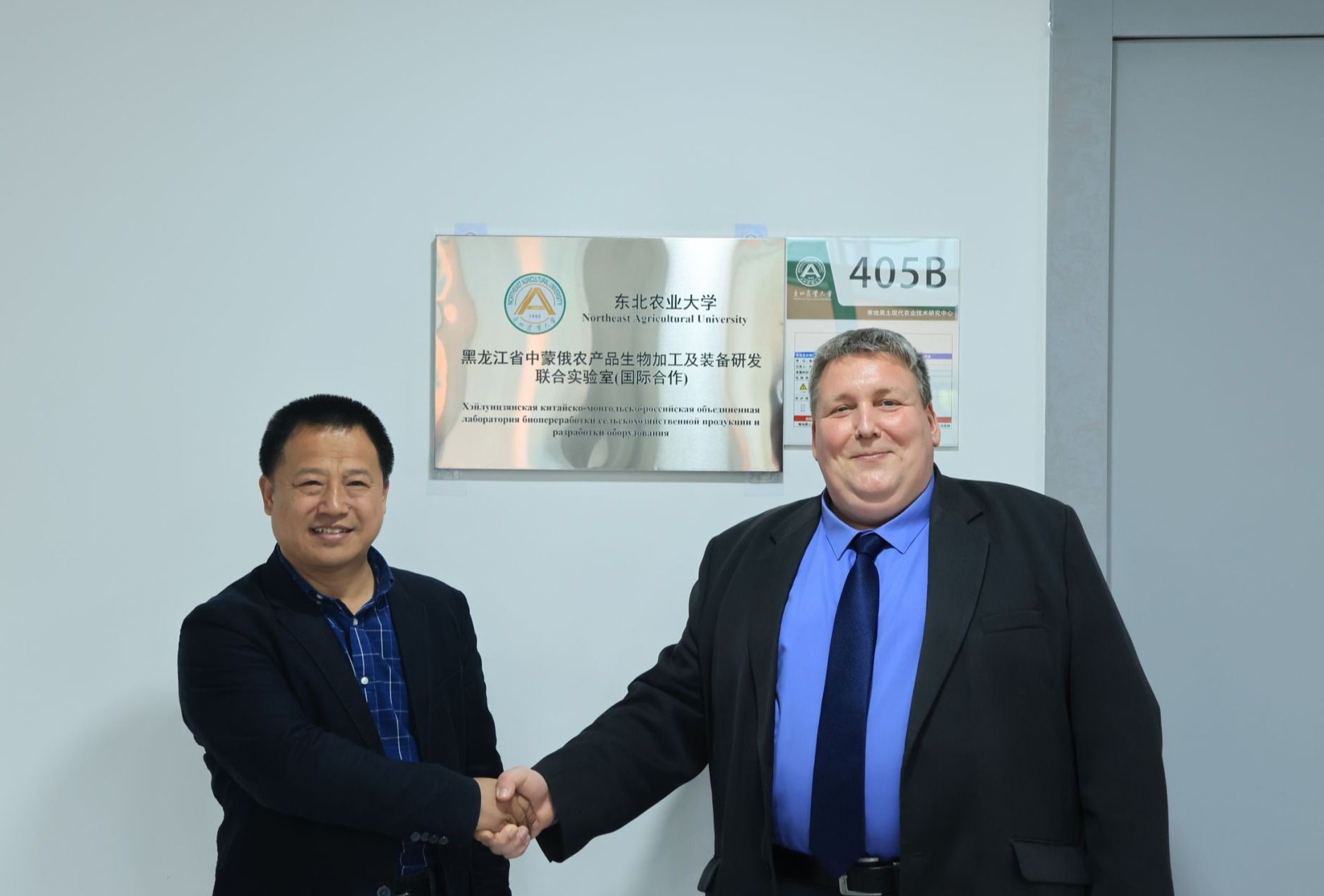 随后,陈庆山和卡尔浦新共同为新迁入寒地黑土现代农业技术研究中心的黑龙江省中蒙俄农产品生物加工及装备研发联合实验室揭牌。