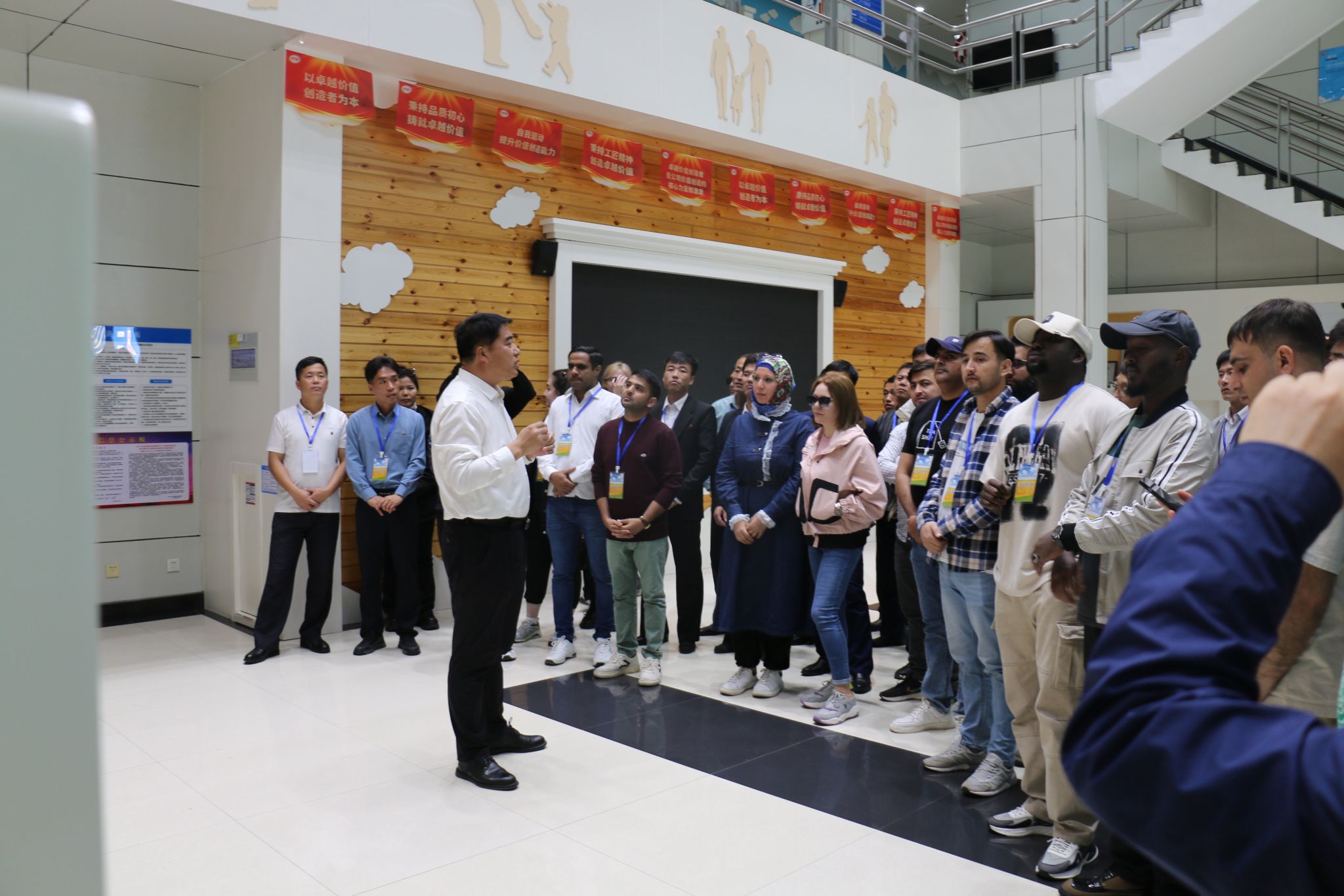 在肇东市伊利乳业有限责任公司和大庄园肉业集团股份有限公司,留学生们深入车间实地了解黑龙江农牧业企业的发展历程及现状、生态养殖和食品生产过程,对企业绿色发展理念、健康理念等产生浓厚兴趣。