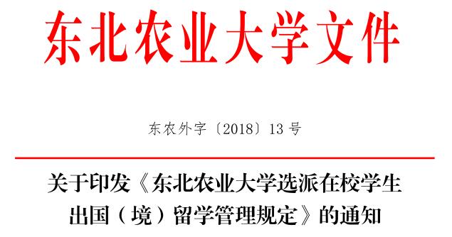 现将《东北农业大学选派在校学生出国(境)留学管理规印发给你们,请认真贯彻执行。