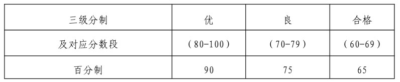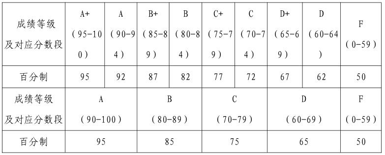 (三)若学习成绩记载方式以“A”“B”……“F”方式给出,则根据以下表中成绩等级与百分制成绩的对应关系,转换成相应的百分之成绩。