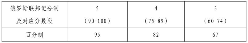 (二)俄罗斯联邦学习成绩记载对应转换关系。俄罗斯联邦记分制及对应分数段
